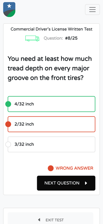 Prepare for your CDL - Endorsement N (Tanker Vehicles) exam with our comprehensive online practice test simulator. Tailored for aspiring... learn moreAdd to Cart Added